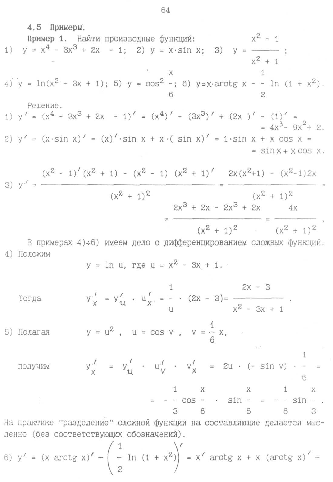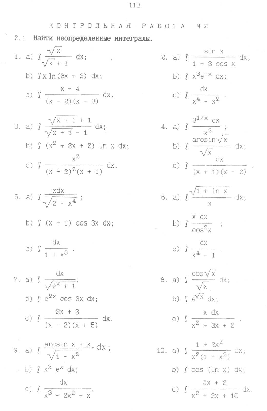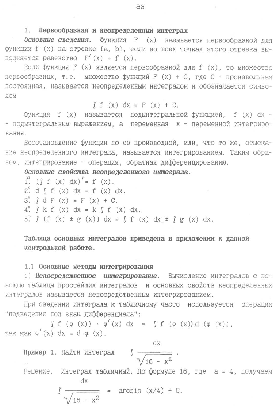 Контрольная работа № 2. Интегрирование……………………………………...82