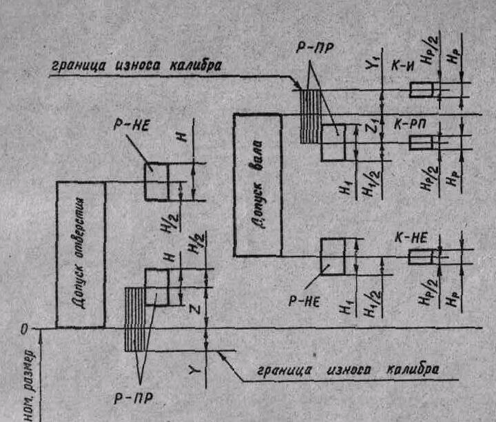 Схема расположения полей допусков калибров