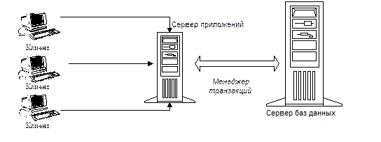 Многоуровневые клиент-серверные системы легко можно перевести на Web-технологию - для этого достаточно заменить клиентскую часть универсальным браузером, а сервер приложений дополнить Web-сервером и небольшими программами вызова процедур сервера. В трехуровневой системе по каналу связи между сервером приложений и БД передается много информации, при этом не замедляются вычисления, так как для связи указанных элементов используются более скоростные линии. Это требует меньших затрат, так как оба сервера находятся в одном помещении. Но при этом встает проблема согласованности совместных вычислений, которую призваны решать менеджеры транзакций - новые элементы многоуровневых систем.