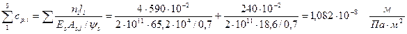 - суммарный коэффициент податливости плит перекрытий вычисляется с использованием формул (14) и (17), принимая в них для плит длиной l=590 см As=65,2 см2; для плит длиной l=240 см, As=18,6 см2;