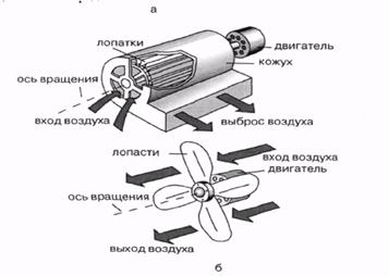 Рис.3.7. Вентиляторы: а) центробежный и б) осевой.