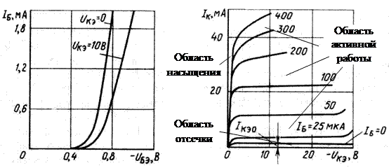 Рисунок 1.27 – Статические ВАХ биполярного транзистора,