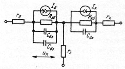 Рисунок 1.29 – Схема замещения биполярного транзистора