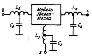 Глобальная электрическая модель дискретного биполярного транзистора, учитывающая индуктивности и емкости его выводов, представлена на рисунке 1.30.
