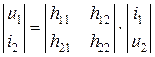 Транзистор удобно описывать, используя так называемые h-параметры. При этом система уравнений четырехполюсника в матричном виде примет вид