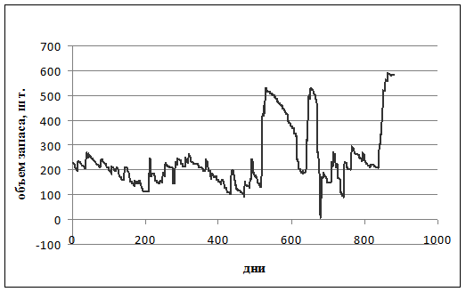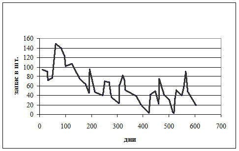 Рис. 1.3. Динамика величины запасов амортизаторов на складе автотранспортного предприятия