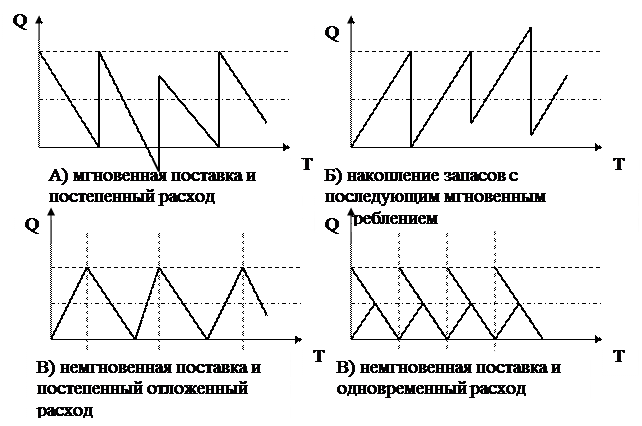 Форма пилообразной диаграммы будет зависеть от характера процессов пополнения и расходования запасов (см. рис. 1.4).