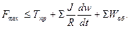 При равномерном движении подвижного состава, чему соответствует равномерное вращение колеса (угловая скорость w = const), при отсутствии трения в подшипниках и передаче можно принять Fк = Тк .