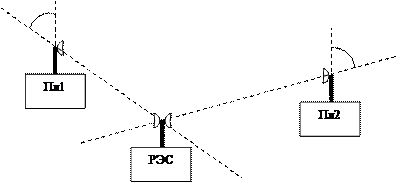 Настраивая указанные антенны на минимум и максимум принимаемого сигнала, а при необходимости используя суммарно-разностную обработку сигналов, принятых разными антеннами в составе Пл1 и Пл2, удается с требуемой точностью определить азимуты направлений прихода сигнала от РЭС к пунктам РК согласно схеме на рис. 1.16.