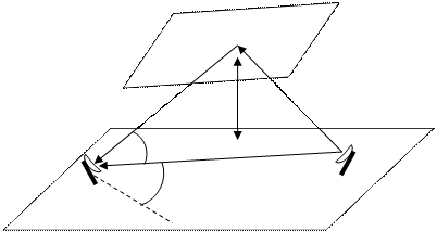 - метод определения местоположения одной станцией (ОМОС) – в диапазонах СЧ и ВЧ по ионосферной волне, который предусматривает определение азимута φ и угла места Δ приходящей в пункт РК пространственной ионосферной волны (см. схему на рис. 1.17) и применение компьютерной программы расчета географических координат РЭС на поверхности Земли для заданной действующей высоты hД и состояния ионосферы.