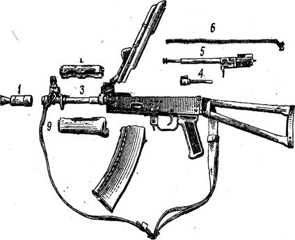 Принадлежность служит для разборки, сборки, чистки, смазки автомата и ускоренного снаряжения магазина патронами.