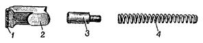 Он имеет зацеп, который попадает в кольцевую проточку гильзы или патрона и удерживает их в чашечке затвора. Выбрасыватель вставляется в паз в затворе.