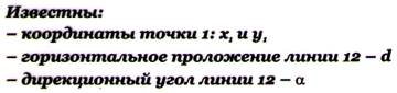 Сущность задачи заключается в том, чтобы по известным координатам начальной точки линии, дирекционному углу линии и ее горизонтальному проложению найти координаты конечной точки (рис.43).