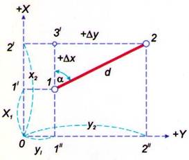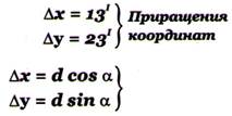 Прибавляя найденные значения приращений к координатам точки 1, получим координаты точки 2