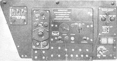 1 – пульт управления ПУ-2В курсовой системы КС-3Г; 2 – пульт дистанционного управления радиостанции Р-842; 3 – щиток УРТ-27; 4 – переключатель электромеханизма ЭПК-2Т стеклоочистителя.