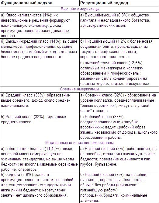 Таблица 4 – Функциональный и репутационный подходы к социально-классовой структуре