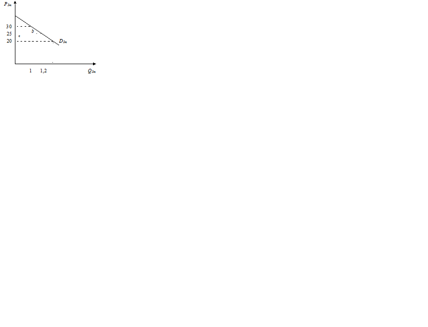 Американские потребители получат выгоду, так как внутренняя цена снизится с $30 до $25. Однако определить изменение излишка потребителя невозможно в связи с тем, что отсутствует информация об уровне внутреннего потребления или производства. Американские производители понесут убытки. Прибыль потребителей превысит убыток производителей на величину треугольника b (рис. 2), площадь которого равна $0,5 млн