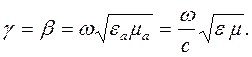 Формулы для расчета составляющих волнового числа в несовершенном диэлектрике с малыми потерями упростятся и примут следующий вид: