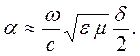 В тех диапазонах электропроводностей среды 2, которые обычно встречаются в задачах, можно воспользоваться приближенной формулой. Для этого в формуле (2.2) надо заменить соответствующее волновое число ее модулем.