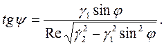 Диэлектрик с потерями. Диэлектриком с потерями будем называть среду, в которой обе составляющие тока имеют один порядок. Для определенности будем полагать, что величина тангенса угла диэлектрических потерь лежит в пределах от 0.1 до 10: 0.1 ≤ tg δ ≤ 10. Для расчета характеристики волны в такой среде надо использовать общие формулы (3.2) - (3.10). При этом угол прохождения может быть определен по формуле:
