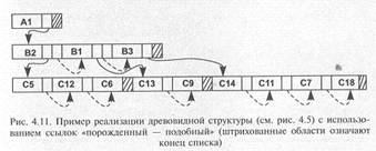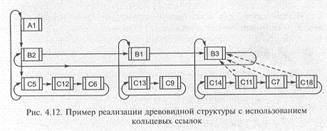 При построении древовидных структур, в которых используется какой-либо один тип указателя, всегда исходят из альтернативы между сложностью реализации списка указателей переменной длины на порожденные записи и увеличением времени поиска, связанным с использованием цепочки указателей на подобные записи.