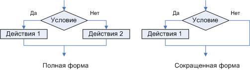 Стандартные блок-схемы разветвляющегося алгоритма приведены ниже: