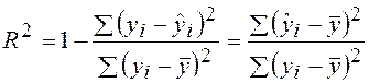 Выражение для коэффициента детерминации через суммы квадратов отклонений будет иметь вид: