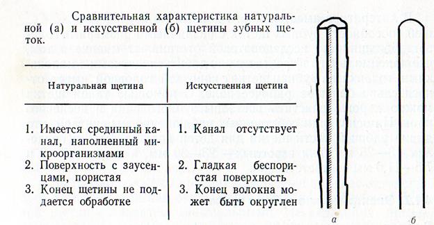 Щетина зубных щеток традиционно изготавливалась из свиной щетины. Натуральная щетина в силу определенных недостатков ограничивала и сокращала возможности по разработке более совершенных зубных щеток. В настоящее время разработана технология закругления, шлифовки и полировки кончиков каждой искусственной щетинки. Ввиду бесспорного преимущества искусственного волокна для изготовления зубных щеток, производство щеток с натуральной щетиной сведено к минимуму.