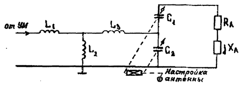 Известно, что максимальная передача энергии ог источника (в радиопередатчиках - от УМ) в антенну обеспечивается при согласовании внутреннего сопротивления источника энергии и входного сопротивления антенны. А поскольку в военных радиостанциях, как правило, предусматривается использование нескольких антенн, входное сопротивление которых является комплексным, зависит от частоты изменения в широких пределах, то возникает необходимость преобразования комплексного сопротивления антенны Za=R+jХа в постоянное сопротивление нагрузки Rн.