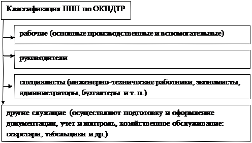 Для распределения всей численности работников по различным категориям пользуются Общероссийским классификатором профессий рабочих, должностей служащих и тарифных разрядов (ОКПДТР). В соответствии с этим классификатором ППП (рис. I.6.1):