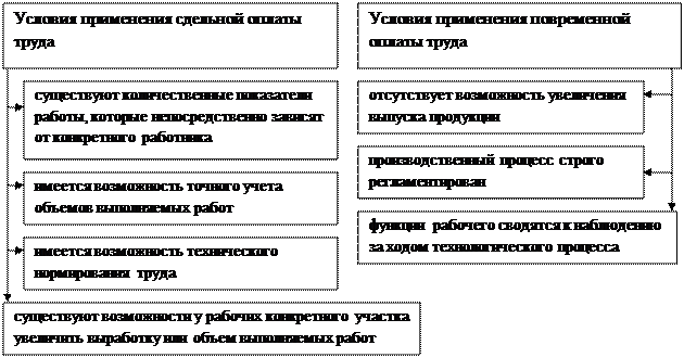 Рисунок I.6.4. Условия применениясдельной и повременной оплаты труда.