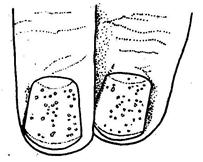 точечные вдавления на ногтях и их дистрофия при ПА и б-ни Рейтера (рис.4).