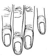 Диагностическое значение имеют и изменения ногтей: с-м «наперстка» -
