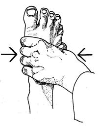 Кисть: захватив 1-2 пальцами концы суставов кисти, пытаются сдвинуть их в противоположные стороны. В норме это невозможно.