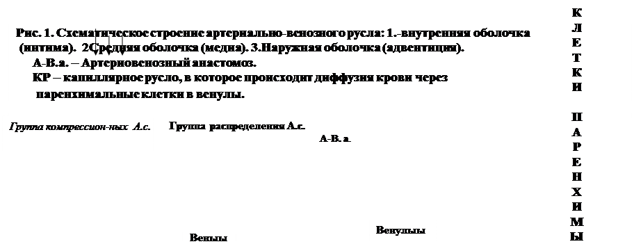 Из анатомо-физиологических особенностей артериального и венозного русла обращает на себя внимание строение оболочек артериальных и венозных сосудов (рис.1) :