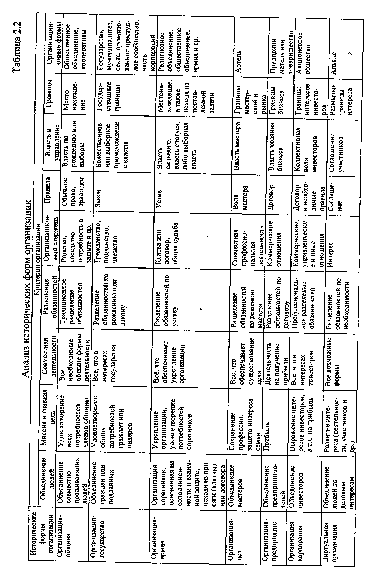Рассмотрим более подробно особенности данных исторических форм организации (табл. 2.2).