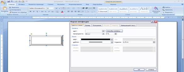 Пример 1 - при форматировании Фигуры команда ФорматАвтофигуры вызывает диалоговое окно, которое содержит вкладку Цвета и линии, предназначенную для изменения параметров выделенной Фигуры (См. рис. 20)