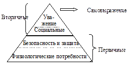 | Физиологические потребности | Комфортные условия труда (тепло, свет и т.п.), оклад | Пища, вода, жилье и т.п. |