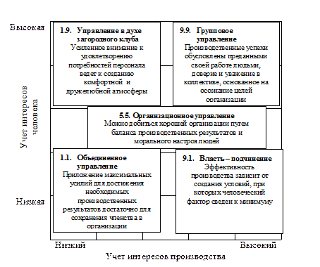 Примером учета этих факторов при построении модели мотивации может служить так называемая управленческая решетка Блейка-Моутона (1985).