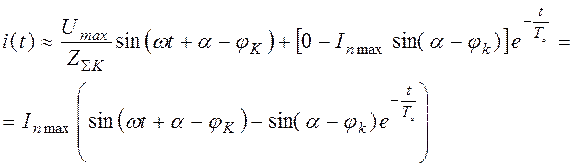 В зависимости от момента времени возникновения КЗ (т.е. значения угла a), начальное значение (ia(0)) может изменяться от 0 (когда sin α = 0) до максимального – (Imax – In max),когда sin α =1.
