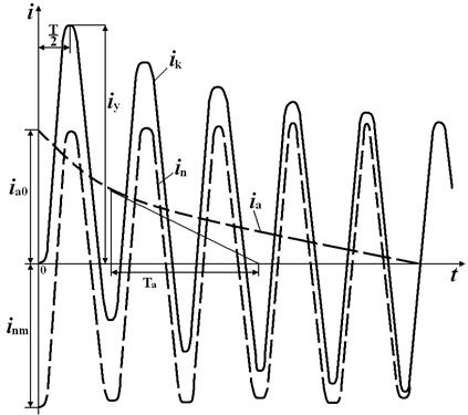 Рисунок 2.5 - Кривые изменения полного тока КЗ и его составляющие