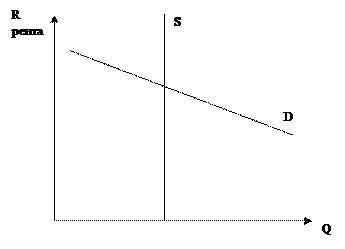 Предложение земли абсолютно неэластично, так как в каждый данный момент времени каждая экономическая система обладает определенным количеством земли и как бы ни менялась цена на землю, от этого ее количество не изменится. Следовательно, кривая предложения земли вертикальна.