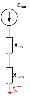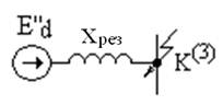 Простейшей называется эквивалентная схема, состоящая из одного результирующего сопротивления хрез, с одной стороны к которому приложена расчетная ЭДС, а с другой – находится расчетная точка КЗ с нулевым потенциалом.