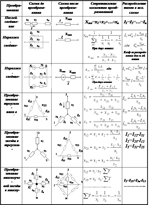 Таблица 6.1 - Основные формулы преобразования схем и токораспределения