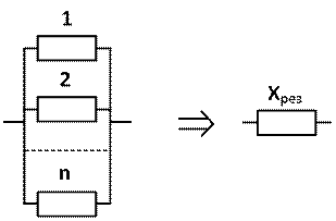 Если сопротивления соединены параллельно, равны по величине Х1=Х2=Х3, то результирующее сопротивление определяется по формуле: