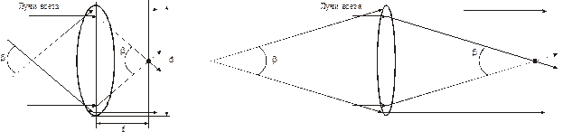 На рис. 3.6 показано, как изменение относительного отверстия влияет на изменение светосилы объектива. При уменьшении относительного отверстия уменьшатся телесный угол b, под которым свет попадает на светочувствительный элемент.