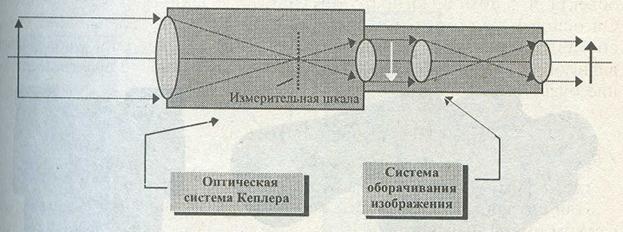 Основной недостаток оптической системы Кеплера – переворачивание изображений, из-за чего наблюдатель видит всё вверх ногами. Для устранения этого недостатка в систему вводят компоненты, обеспечивающие нормальное положение объекта. В качестве таких элементов вводят дополнительные линзы (зрительные трубы с дополнительными линзами называют обыкновенными, см. рис. 3.8) либо призмы (зрительные трубы с призмами называют призменными, см. рис. 3.9).