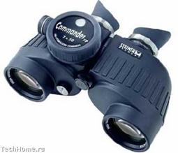 Объективы и призмы оборачивающей системы закреплены в зрительных трубах неподвижно, а окуляры могут выдвигаться для установки по силе зрения наблюдателя. Для этого на окулярных трубах наносятся диоптрийные шкалы. Современные бинокли имеют большие коэффициенты (кратности) увеличения. Например, увеличение бинокля Navigator(рис. 3.10)изменяется в пределах 8…24, угол поля зрения ~ 8 градусов, диаметр объектива 50 мм, предельное разрешение не более 2,6 угловых секунд, цена 1400 рублей [6]. Бинокль Commander XP(рис. 3.11) имеет кратность увеличения 7, поле зрения при дальности 1000 метров составляет 130 метров, цена 43000 рублей [6]. При достаточно большом увеличении визуально-оптического прибора его угол зрения становится столь малым, что трудно из-за дрожания рук удерживать изображение наблюдаемого объекта в поле зрения прибора.