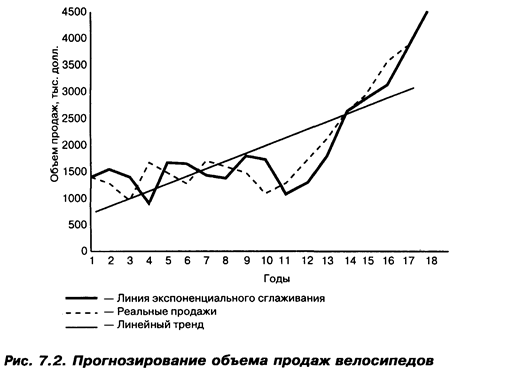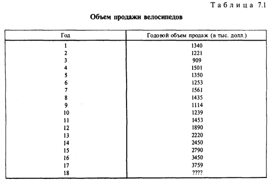 В табл. 7.1 приводятся данные объема продаж велосипедов определенной компании за 17 лет.