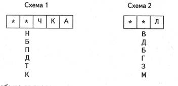 Логопед: Рассмотрите схемы слов. Подставляйте на первое место слева предлагаемые ниже согласные буквы (по одной), а на второе место - сначала букву а, потом о. Прочитайте полученные слова. Запишите их. С какими буквами у вас получилось два слова? С какими одно?